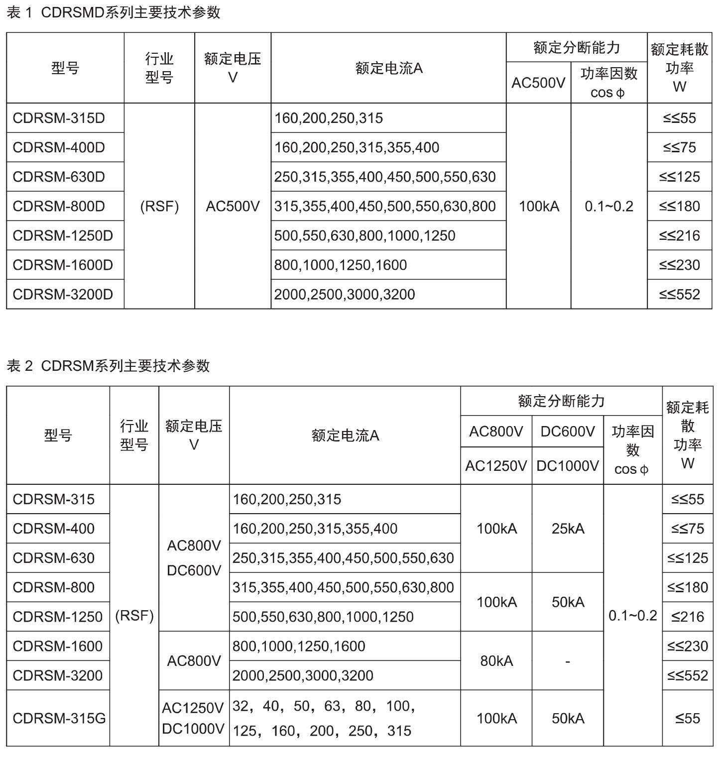 CDRSM series fuse can be equipped with a signal switch according to user needs, and its output signal can be used as remote control. The fuse for the protection of CDRSM-315G series semiconductor equipment is suitable for AC 50HZ circuits with a rated AC voltage 1250V, a rated DC voltage 1000V, and a rated current 32A-315A for short circuit protection of the complete set of devices composed of rectifier diode, thyristor and its semiconductor devices and for overload protection of the device where no overcurrent is allowed.