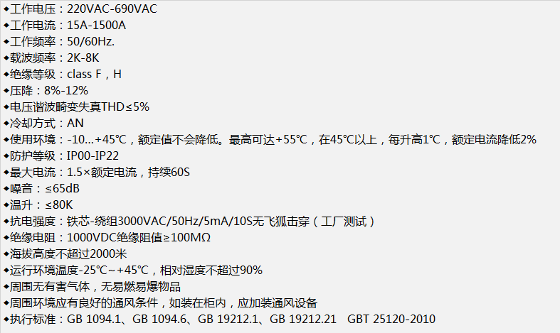 Driven by a PWM inverter, a sine wave filter can still provide a smooth sine wave at the low residual ripple voltage in the switching frequency range between 2-8kHz. In inverter drive applications, it can prevent damage to the winding insulation of the motor, reduce the resonance generated by the distributed capacitance and distributed inductance due to cable length, eliminate motor overvoltage caused by high dv/dt, eliminate the early damage to the motor caused by eddy current loss, improve the performance and life of the motor, and extend the output distance of the inverter.