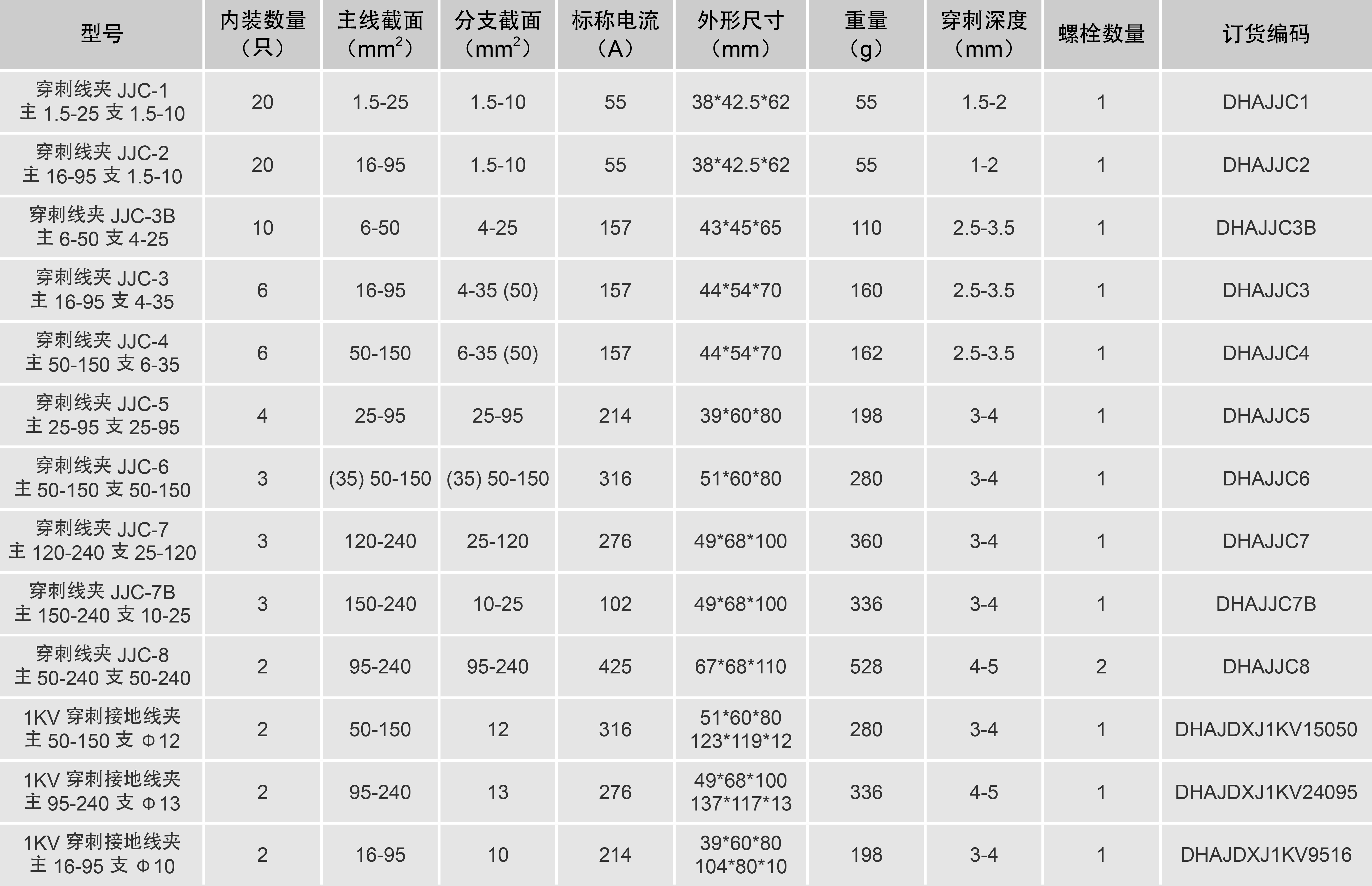 With puncture structure and simple installation, stripping the wire insulation layer in the distribution line is not required for electricity With special copper contact blade used, suitable for copper (aluminum) connection and copper aluminum transition With torque nut and constant puncture pressure, ensure a good electrical connection without causing damage to wire With self-sealing structure, moisture-proof, waterproof, anti-corrosion, prolong the life of insulated conductors and clamps