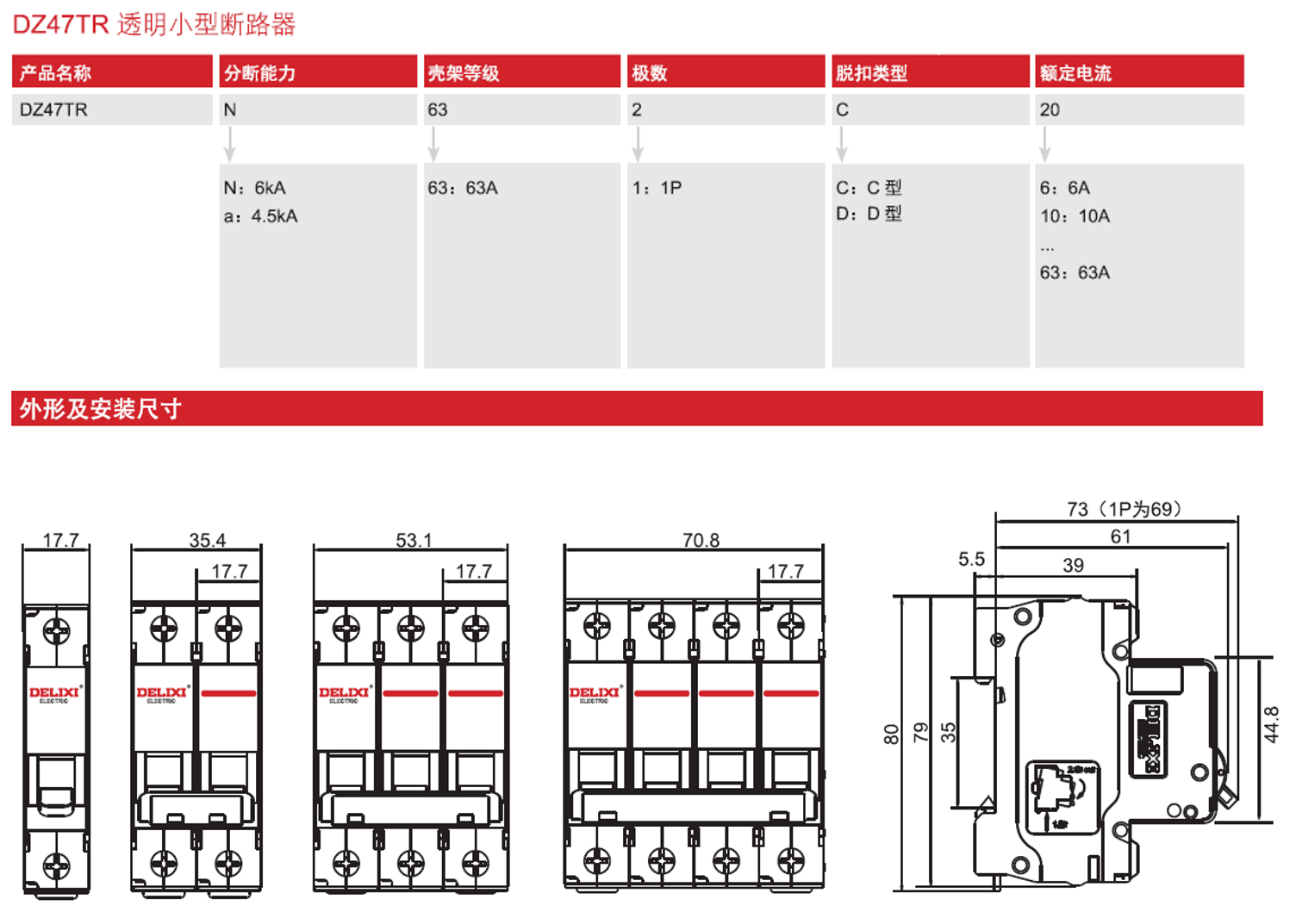 DZ47TR transparent miniature circuit breaker is suitable for AC 50HZ low voltage terminal power distribution system with a rated voltage 230V/400V and a rated current 6-63A, and has short circuit protection, overload protection, disconnection and control functions.