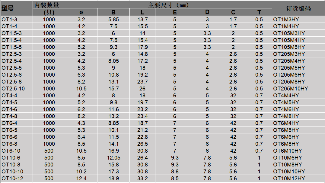 Home page >Products >Power Distribution Products >Electrical Materials >Electrical Materials >Cold-pressed Terminals >OT Round Cold-Pressed Terminal