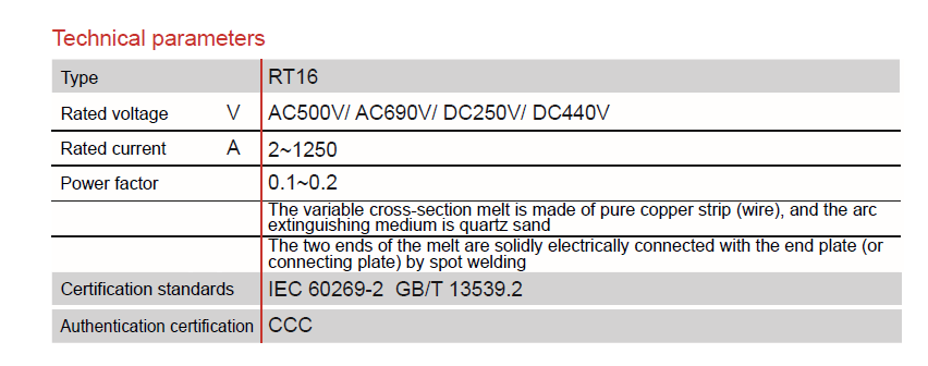 RT16 series knife contact fuse is widely used in power distribution system for short circuit overload protection in line with CCC and ROHS certification