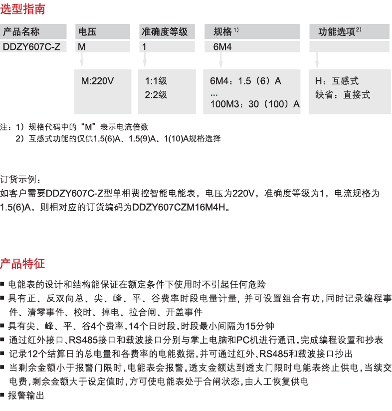 DDZY607C-Z single-phase fee-controlled intelligent power meter is suitable for electricity consumption regulation according to the corresponding different electricity prices in the different electricity consumption periods to realize peak load shaving, and is used in the remote power sales management system to realize centralized meter reading of power carrier; it is a new state grid meter used in the State Grid Corporation.