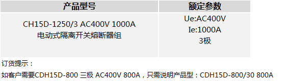 CDH15D series electric disconnector fuse set has a rated insulation voltage 1000V, a rated frequency 50Hz, a rated working voltage to AC400/690V, and a rated working current to 1250A, and is mainly used in power distribution circuit for power isolation and power conversion isolation.