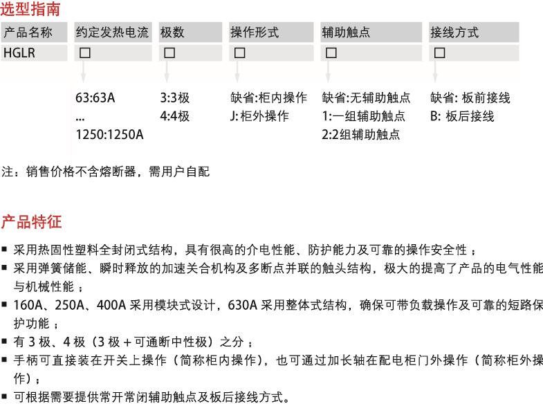 Used in the AC 50Hz circuit with a rated working voltage 660V and below and a rated current to 1250A, and used for infrequent connection and disconnection of circuit, overcurrent or short circuit protection and isolation in the power distribution system.