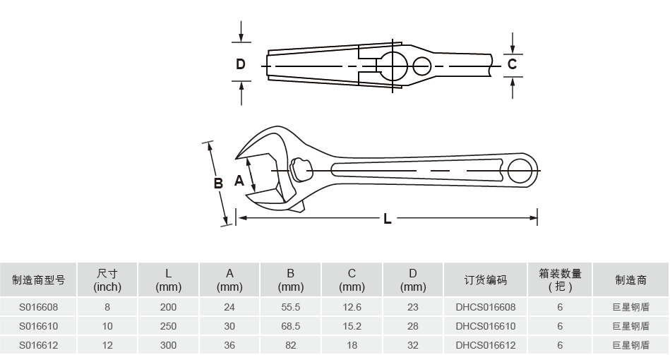 The whole body is forged of chrome-vanadium steel, with high clamping force; the movable wrench fits with the wrench body precisely for smooth adjustment; the entire wrench is chrome-plated with artistic appearance and good anti-rust performance; the thickened handle provides good hand feeling for smooth adjustment.
