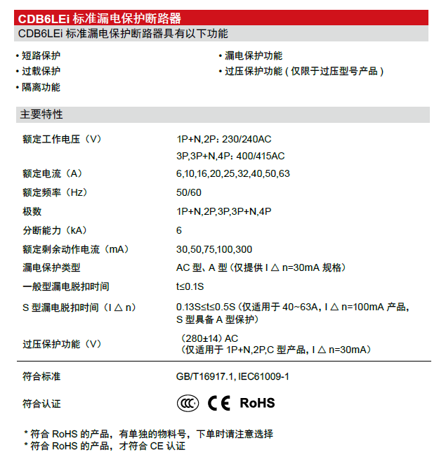 Home page >Products >Power Distribution Products >Final Distribution >Earth Leakage Protective Device >Miniature Earth Leakage Circuit Breaker >CDB6LEi Miniature Residual Current Operated Circuit Breaker