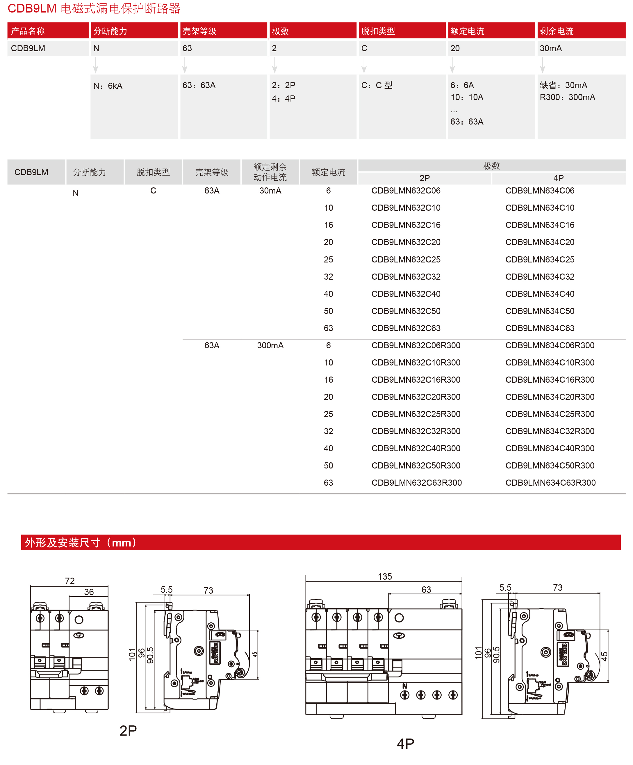 CDB9LM is an electromagnetic miniature earth residual current circuit breaker. Suitable for AC 50HZ low voltage terminal power distribution system with a rated voltage 230/400V AC; With overload protection, short circuit protection, electric leakage protection, control, and isolation functions. It is not only suitable for conventional environments, but also suitable for places with strong electromagnetic interference, such as elevators and construction sites, and its electric leakage protection function is independent of the power supply voltage without any misoperation occurred.