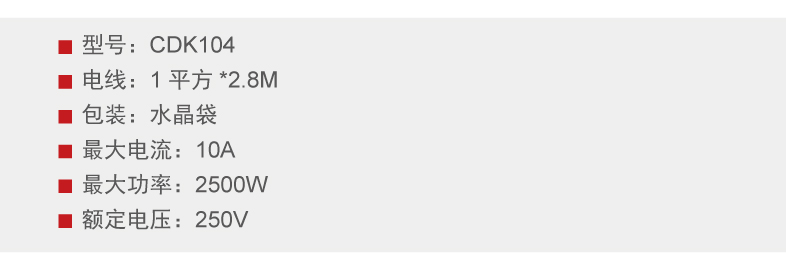 Home page >Products >Power Distribution Products >Final Distribution >Socket >(Extension Cord, Wireless, Functional) Socket >CDK 104 Extension Cord Socket (New GB)