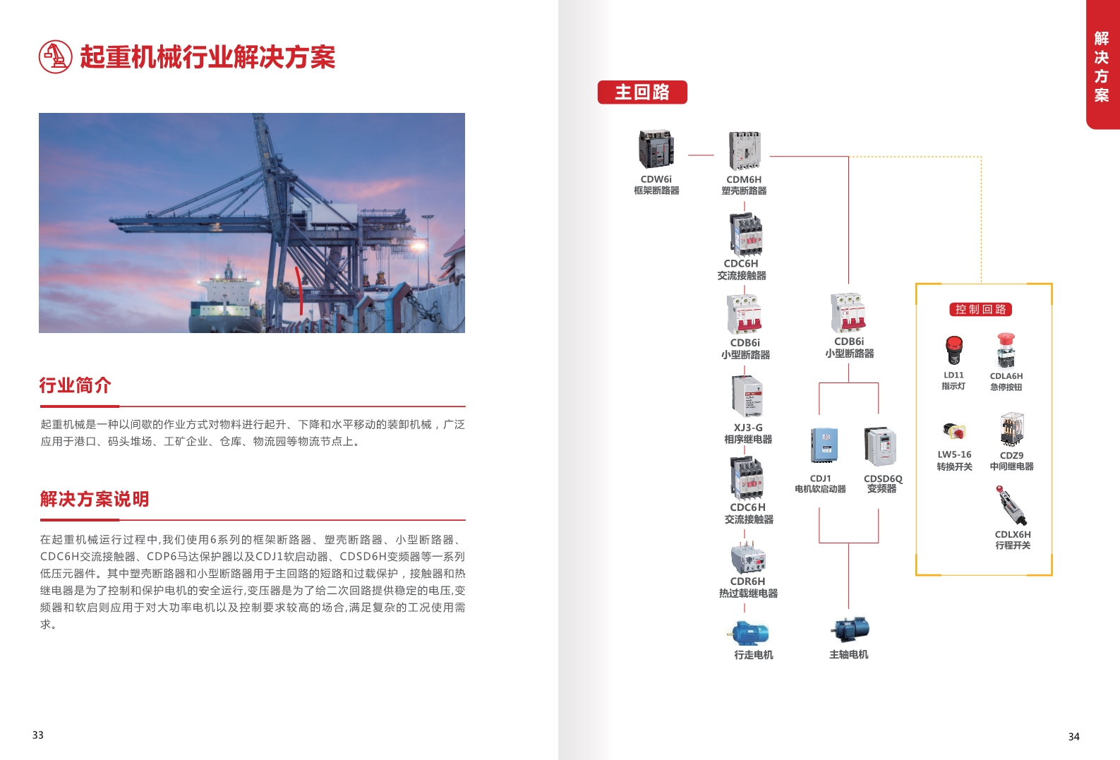 To ensure the operation of the lifting machinery, a series of low voltage components such as 6 series frame circuit breakers, moulded case circuit breaker, miniature circuit breaker, CDC6H AC contactor, CDP6 motor protector, CDJ1 soft starter, and CDSD6H frequency converte are used. Among them, the moulded case circuit breaker and miniature circuit breaker are used for short circuit and overload protection of the main circuit, contactors and thermal R relays are used to control and protect the motor for safe operation; transformers are to provide stable voltage for the secondary circuit, and inverters and soft starter are used in occasions with high requirements for high-power motors and controls to meet the needs of complex working conditions.
