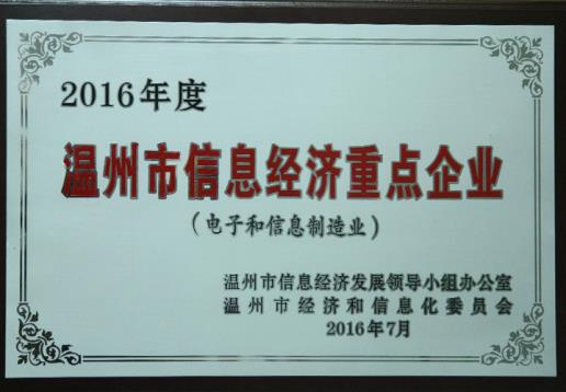 2016年度溫州市信息經(jīng)濟(jì)重點企業(yè)