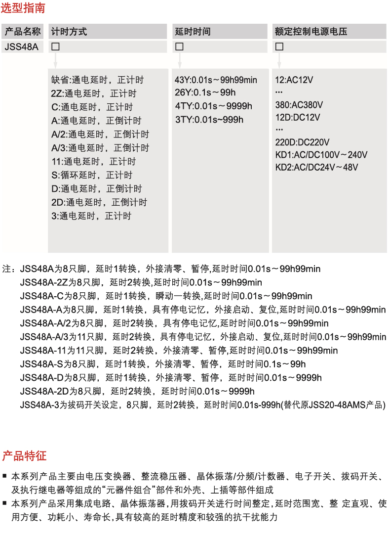 This series of products adopts integrated circuit and crystal oscillator with the DIP switch used to time setting, featuring with wide delay range, intuitive setting, convenient operation, small power consumption, long service life, high delay accuracy and strong anti-interference ability.