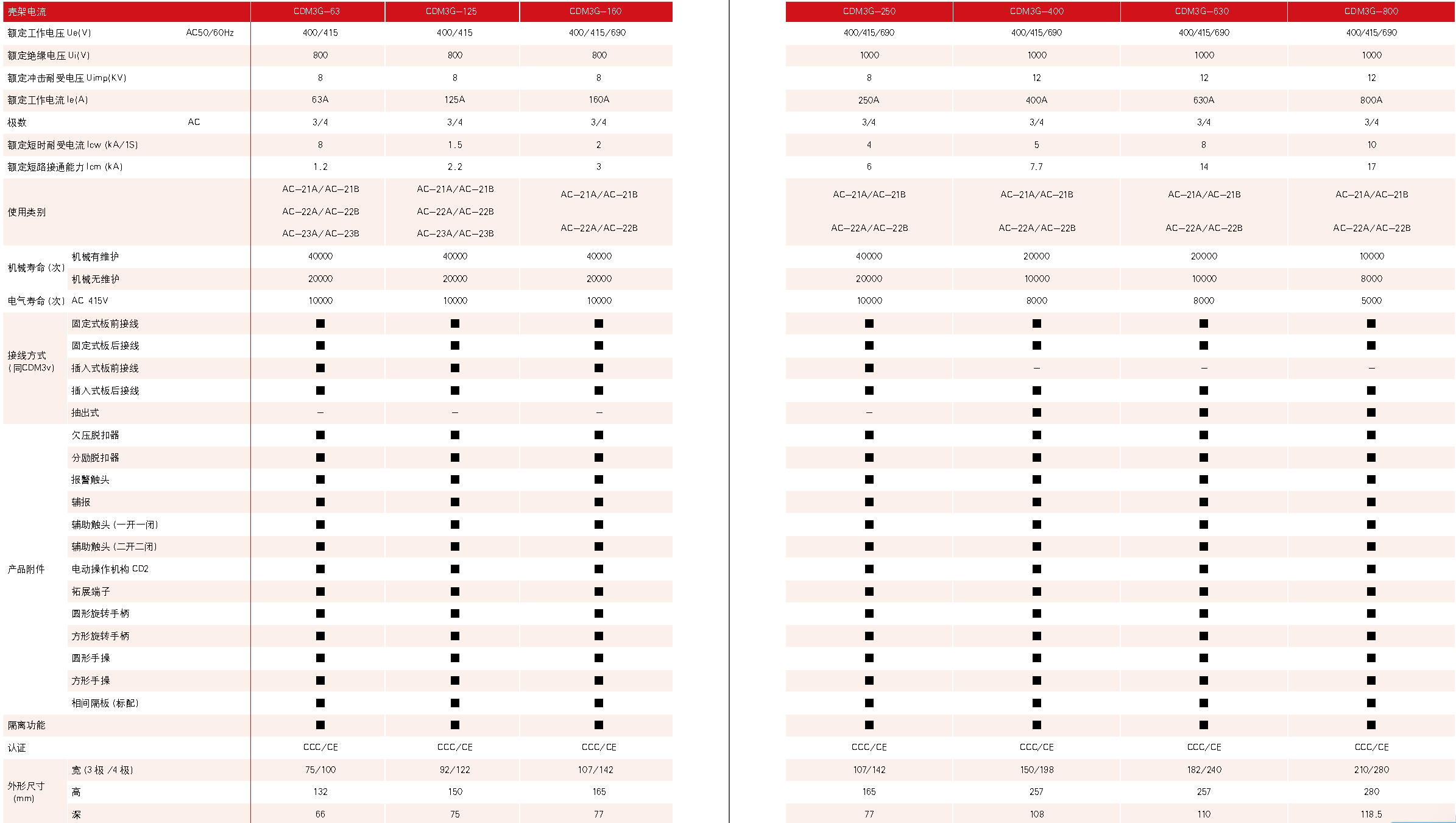 CDM3G series moulded case disconnectors used in distribution networks mainly for infrequent connection and disconnection of circuits for isolation of power supply. It is widely used in low-voltage power places such as electricity, construction, industry, and OEM. Frame size: 63AF 125AF 160AF 250AF 400AF Pole number: 3P, 4P