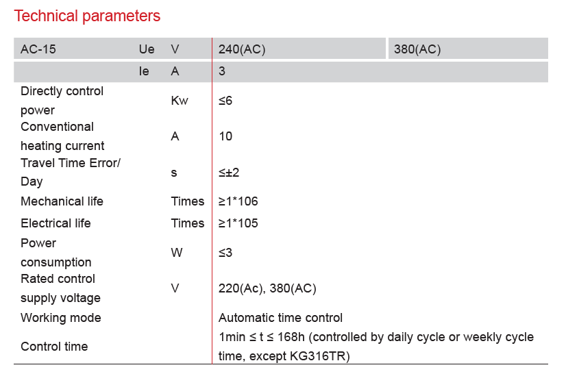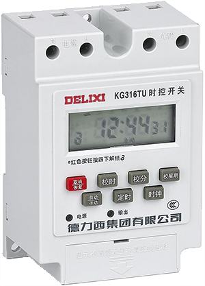 The time control switch KG316TU is used in the AC 50HZ automatic control circuit with rated control power supply voltage 380V and below as a time control element to turn on or off circuits according to the predetermined time; it is used for scheduled connection and disconnection control of street lights and advertising light boxes.