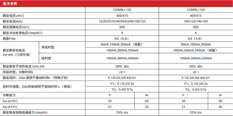 The new CDM9Li residual current operated circuit breaker products have excellent performance and quality and perfect industrial design with its new design concept of new specifications, new performance, and new application by re-integration of global resource advantages through the industry-leading innovative technology platform. With its own efficient and excellent industrial manufacturing efficiency, Delixi Electric provides OEM and industry customers with new products featuring with rich types, complete specifications and perfect protection.