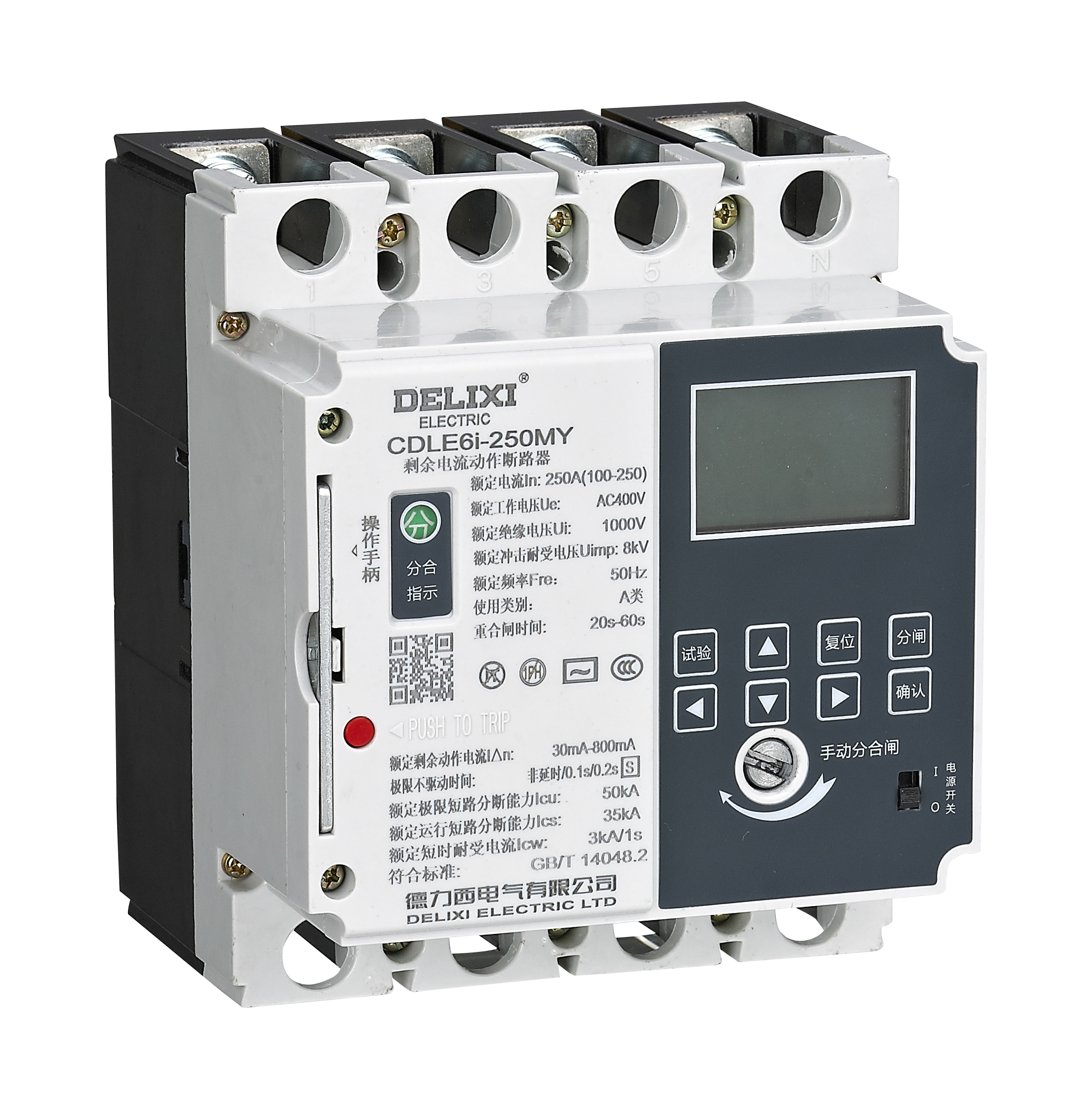 CDLE6i series residual current protection circuit breaker has overload protection, short circuit protection, over/under voltage protection, open phase protection, phase sequence protection, zero line breaking protection, surge protection, automatic reclosing, and communication function, There are optional photovoltaic special module, lightning protection module, and infrared communication functions. It is mainly suitable for three-phase, four-wire neutral point direct ground (TT) systems on the load side of transformers.