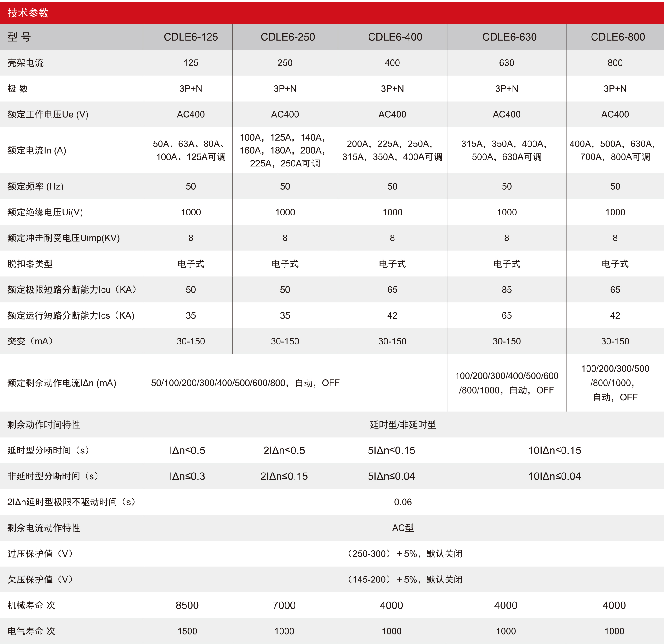 Home page >Products >Power Distribution Products >Power Distribution >Moulded Case Circuit Breaker (MCCB) >Residual Current Operated Circuit-breaker >CDLE6 Residual Current Protection Circuit Breaker
