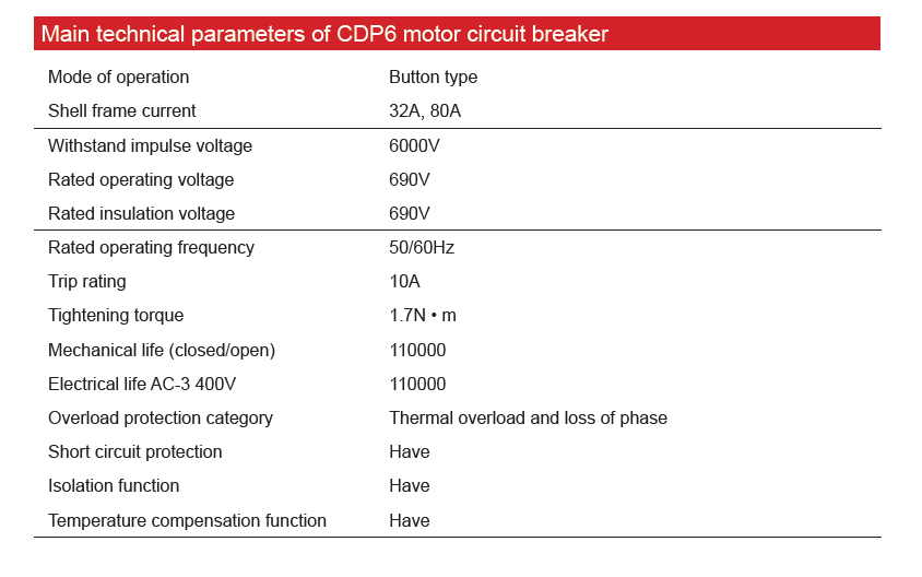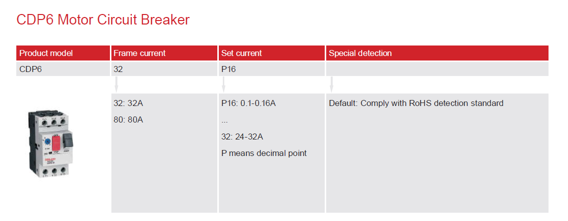 Home page >Products >Industrial Control >Motor Control And Protection >Motor Circuit Breaker >CDP6-32 Motor Circuit Breaker