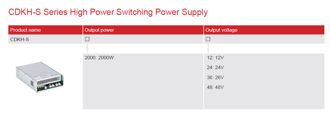 Home page >Products >Power Distribution Products >Power Supply >Universal Switching Power Supply >CDKH-S High Power Switching Power Supply