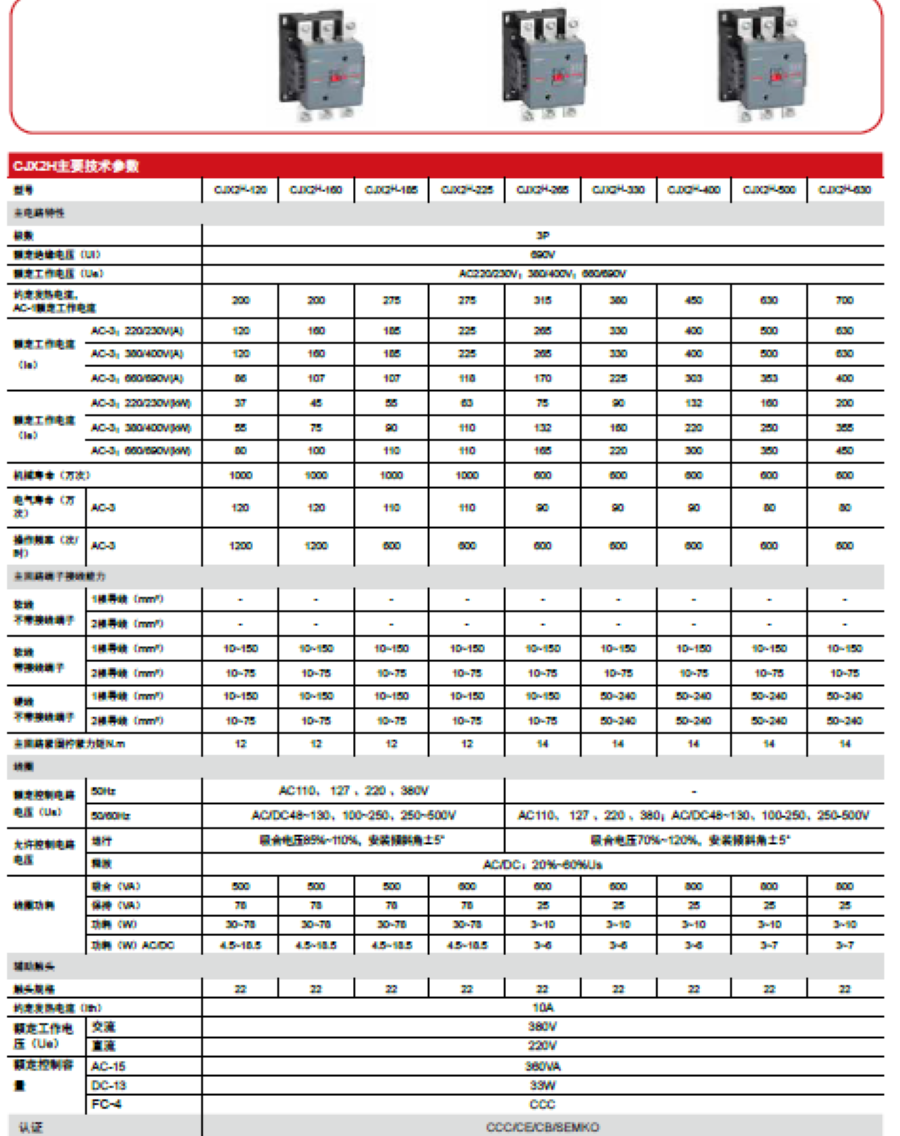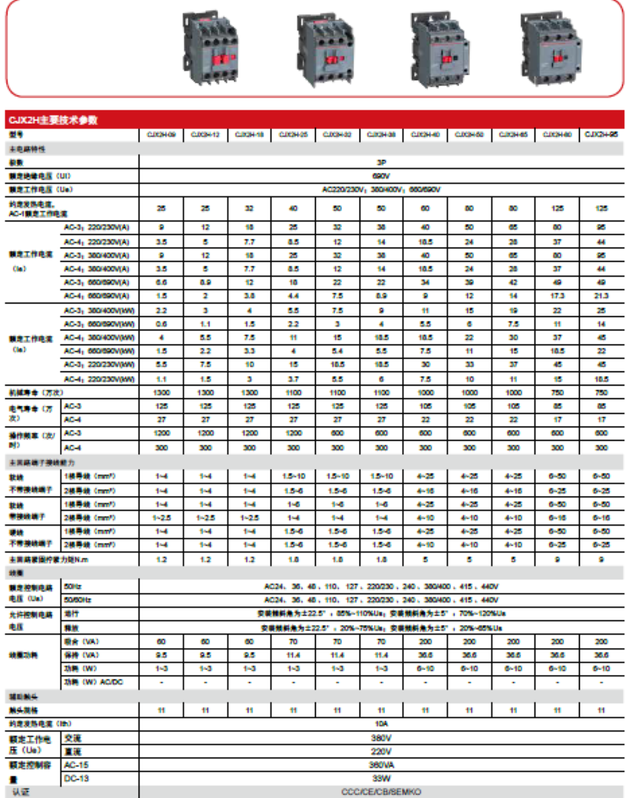The new CJX2H AC contactor product is a upgraded product based on the original Navigator series CJX2s products. The materials of its electromagnetic system, contact system, and contact supports have been widely improved, enhancing the electrical life performance of the product. The product is more suitable for frequent on-off, AC-4 forward and reverse rotation, jogging, blocking rotation, and low voltage start and stop, and can meet a variety of harsh working conditions.