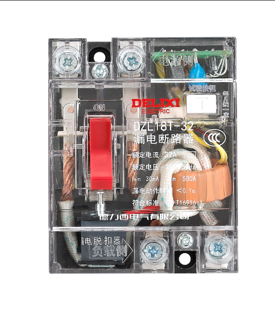 DZL18T transparent residual current circuit breaker is suitable for AC 50Hz circuits with a rated working voltage 220V, and a rated current of 32A or 20A. It is mainly used in temporary distribution boxes on construction sites.