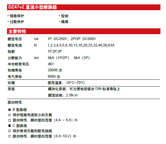 Home page >Products >Power Distribution Products >Final Distribution >Miniature Circuit Breaker >Dc Miniaturee Standard Circuit Breaker >DZ47vZ DC Miniature Circuit Breaker