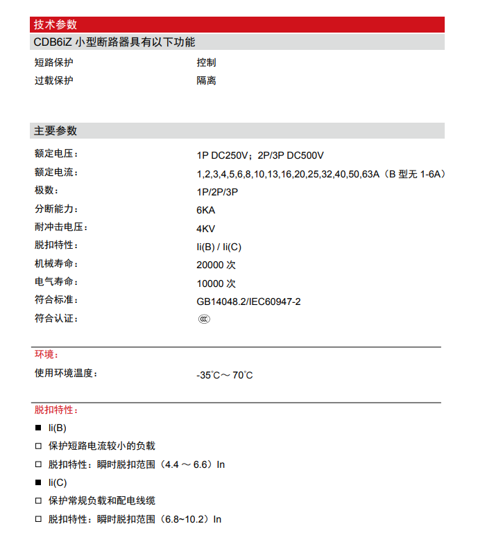 Home page >Products >Power Distribution Products >Final Distribution >Miniature Circuit Breaker >Dc Miniaturee Standard Circuit Breaker >CDB6iZ DC Miniature Circuit Breaker