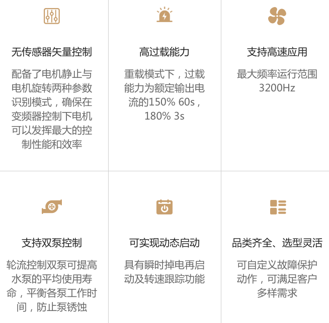 配備了電機(jī)靜止與電機(jī)旋轉(zhuǎn)兩種參數(shù)識別模式,確保在變頻器控制下電機(jī)可以發(fā)揮最大的控制性能和效率