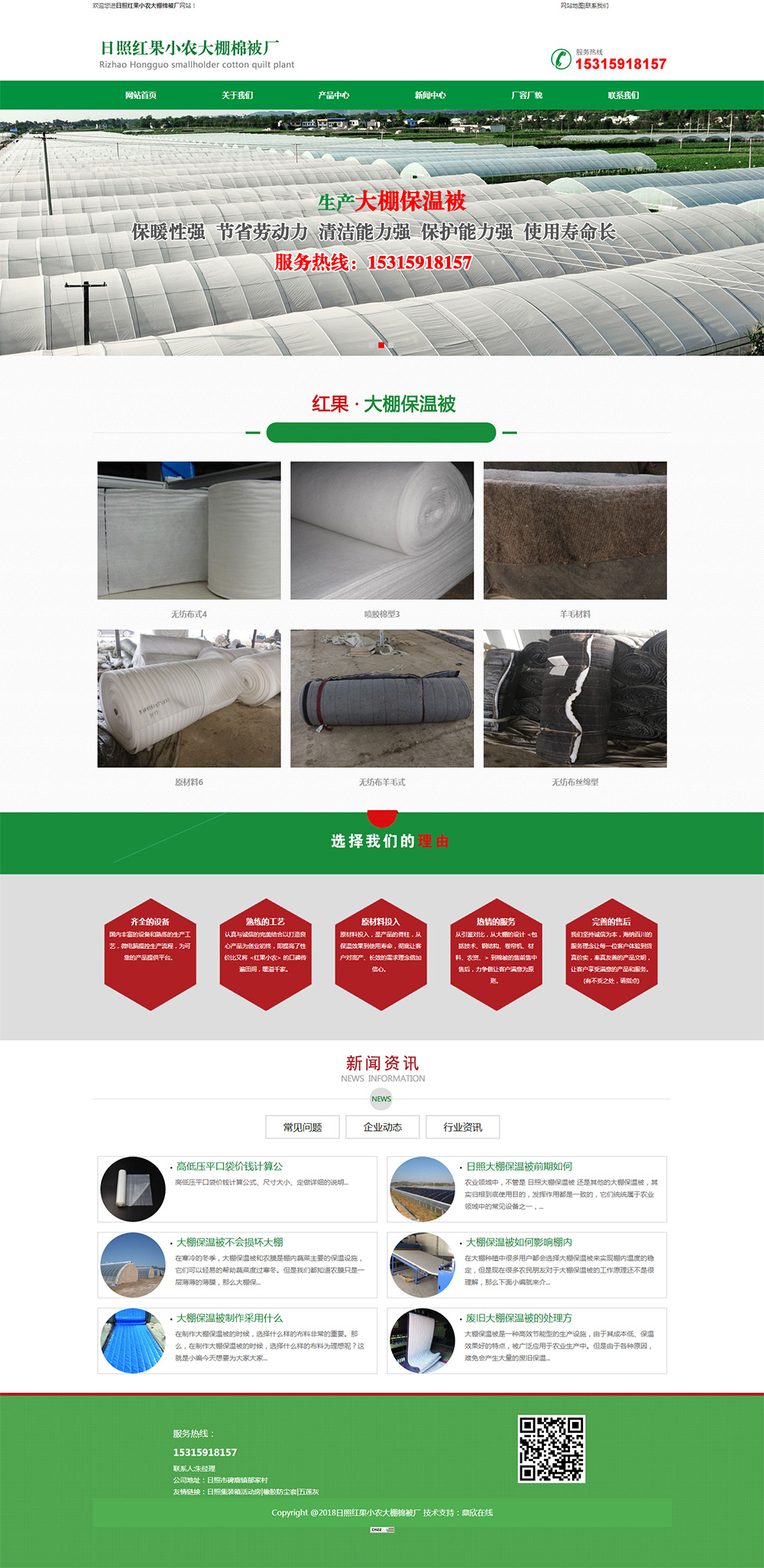 山東省日照市紅果小農大棚棉被廠,開發于三農一線,以市場需要為創業理念,借鑒于蔬菜之鄉壽光等地之三農高科和省市級勞模以及各工業區精英,學習人之長,改善己之短,抱著長遠心態與全體工作人員一體合力,不斷升華產品質量。讓客戶滿意才能實現我們的創造價值,才能在同行業具備競爭力,并加以完善售后服務,讓客戶無后顧之憂。