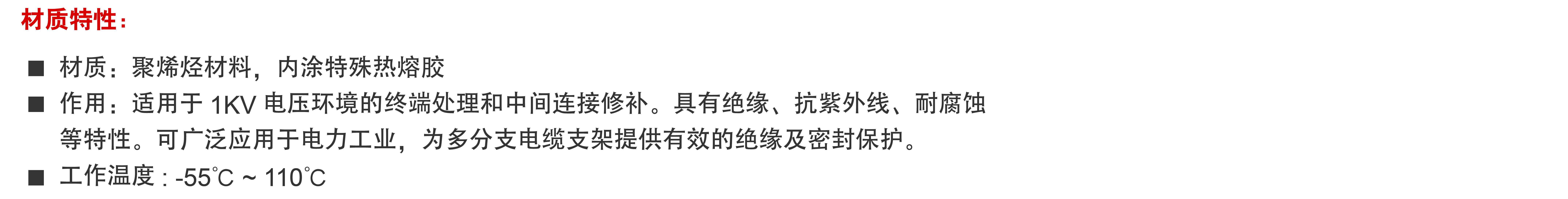The finger sleeve can be tightened without cushion tube for simple and convenient operation; the terminal head insulated pipe has the consistent color with the cable, and can be directly phased and quickly shrunk but is not easily cracked, with low requirements for heat gun, and it has good insulation and flame resistance, and long service life