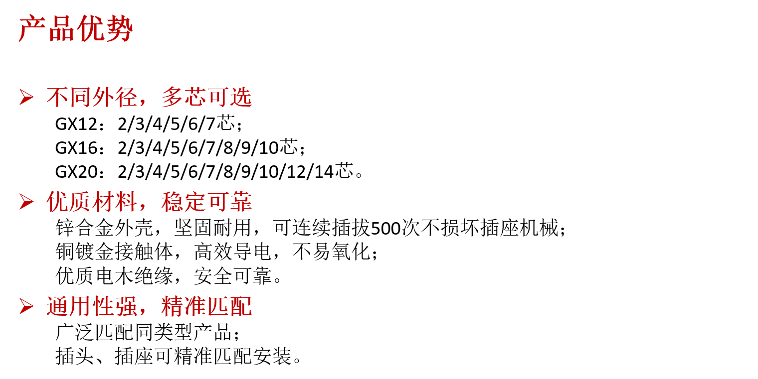 The aviation plug series products launched by company include GX12, GX16, and GX20 series. This series products are widely used in various electrical lines such as machine tools, machinery, communications, and instrumentation for signal transmission and power-on through the plug-in function.