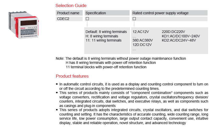 Home page >Products >Industrial Control >Relay >Counter & Timer >CDEC2 Series Counters