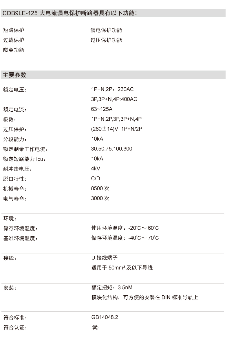 Home page >Products >Power Distribution Products >Final Distribution >Earth Leakage Protective Device >High-current Earth Leakage Circuit Breaker >CDB9LE-125 High Current Earth Residual Current Circuit Breaker