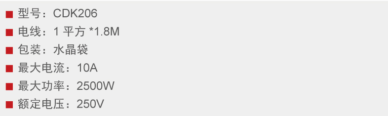 Home page >Products >Power Distribution Products >Final Distribution >Socket >(Extension Cord, Wireless, Functional) Socket >CDK 206 Extension Cord Socket (New GB)