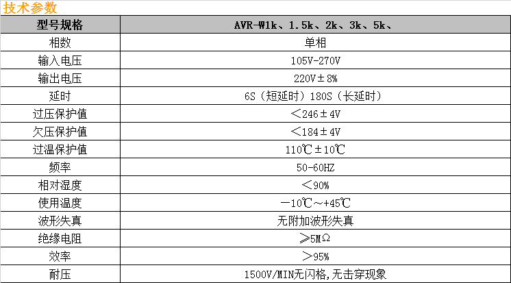 AVR-W series wide range automatic AC regulator is an automatic AC regulator with wide range. The product features with fast response, no waveform distortion, small size, light weight, small power consumption, and multi-function color screen display, and has overvoltage, undervoltage, overload, and temperature protection functions, It is suitable for areas with large voltage fluctuations, and is a voltage stabilization and protection equipment for household appliances such as air conditioners, refrigerators, TVs, and audios. When the output voltage is unstable caused by grid voltage fluctuations or load changes, the control circuit will automatically drive the corresponding relay according to the output voltage change to adjust the self-coupling voltage regulator coil taps (and turns ratio) to realize the automatic and stable output voltage. With small no-load damage and high efficiency, the product can supply a reliable and stable power for electrical equipment for a long time.