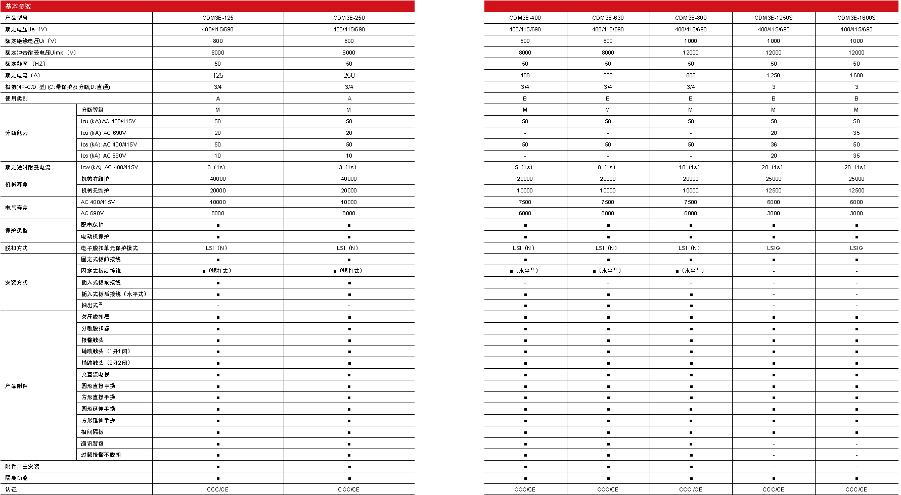 The Navigator series electronic moulded case circuit breaker CDM3E was launched in 2020 with a perfect upgrade of the product realized. CDM3E current has a wide coverage from 32A~1600A; with remote four-remote communication to realize intelligent interconnection; support mobile APP communication and alarm non-trip function; The ultimate use temperature of the product can reach -40°C~70°C.