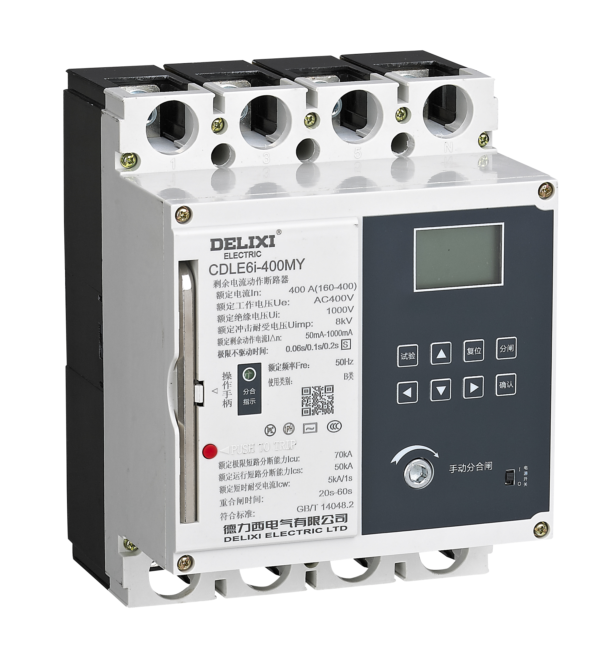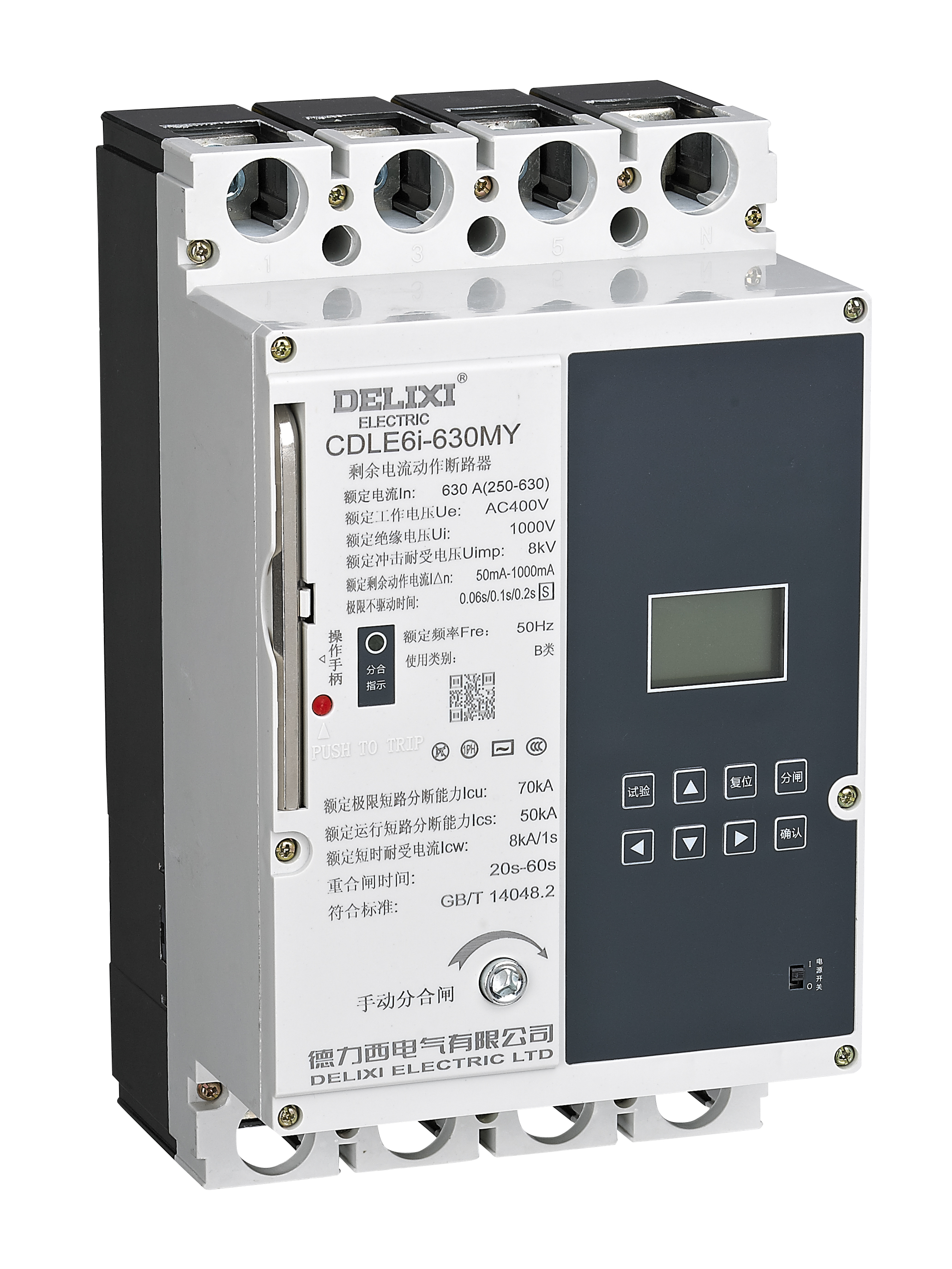 CDLE6i series residual current protection circuit breaker has overload protection, short circuit protection, over/under voltage protection, open phase protection, phase sequence protection, zero line breaking protection, surge protection, automatic reclosing, and communication function, There are optional photovoltaic special module, lightning protection module, and infrared communication functions. It is mainly suitable for three-phase, four-wire neutral point direct ground (TT) systems on the load side of transformers.