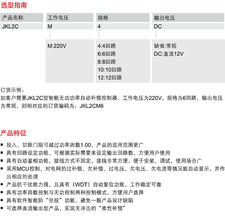 JKL2C intelligent reactive power automatic compensation controller is suitable for low-voltage distribution system capacitor compensation device (controller + AC contactor + capacitor) for automatic regulation, making the power factor reach the user's predetermined state, improving the utilization efficiency of power transformers and reducing line loss.
