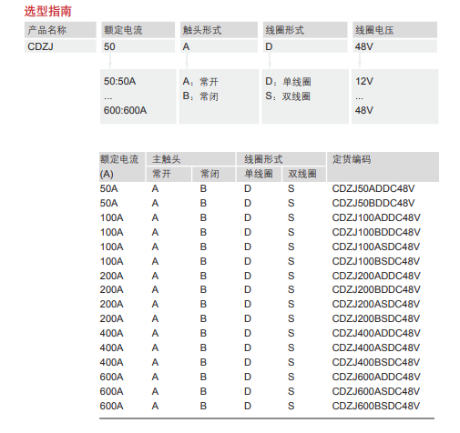 CDZJ DC contactor structure is of the solenoid type. There are round and square electromagnets. Currently, the DC contactor electromagnets produced in China can be round such as ZJ type, and square such as ZJW type. Those two electromagnets can be made into double coil structure and single coil structure. The company has upgraded its normally closed CDZJ-100BD, CDZJ-100BS, CDZJ-200BD, CDZJ-200BS, CDZJ-400BS DC contactor products. If used in electric vehicles, the coil power consumption is large, and it is generally used for intermittent work system. If used in the communication power supply, the coil power consumption is small, and it is generally used for continuous working system.