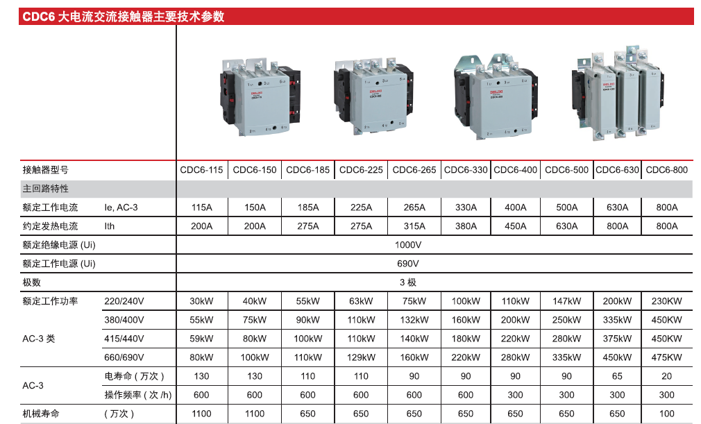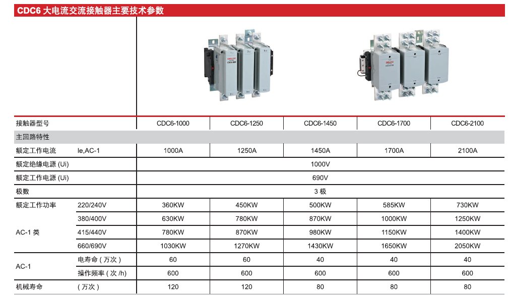 CDC6F series AC contactor (hereinafter referred to as contactor) is mainly used in AC 50Hz or 60H circuits with a rated operating voltage up to 1000V and a rated operating current up to 2100A for remote connection and disconnection of circuits; it can for an electromagnetic starter together with an appropriate thermal overload relay protect circuits that may be overloaded.