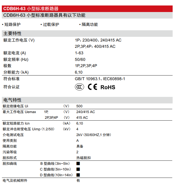 Home page >Products >Power Distribution Products >Final Distribution >Miniature Circuit Breaker >Miniaturee Standard Circuit Breaker >CDB6H-63 Miniature Circuit Breaker