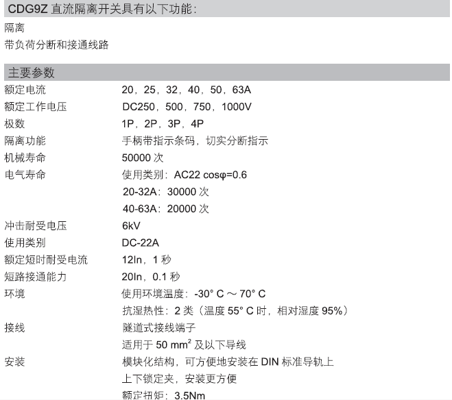 Home page >Products >Power Distribution Products >Final Distribution >Switch Disconnector >Miniature Dc Disconnector >CDG9Z Miniature DC Disconnector