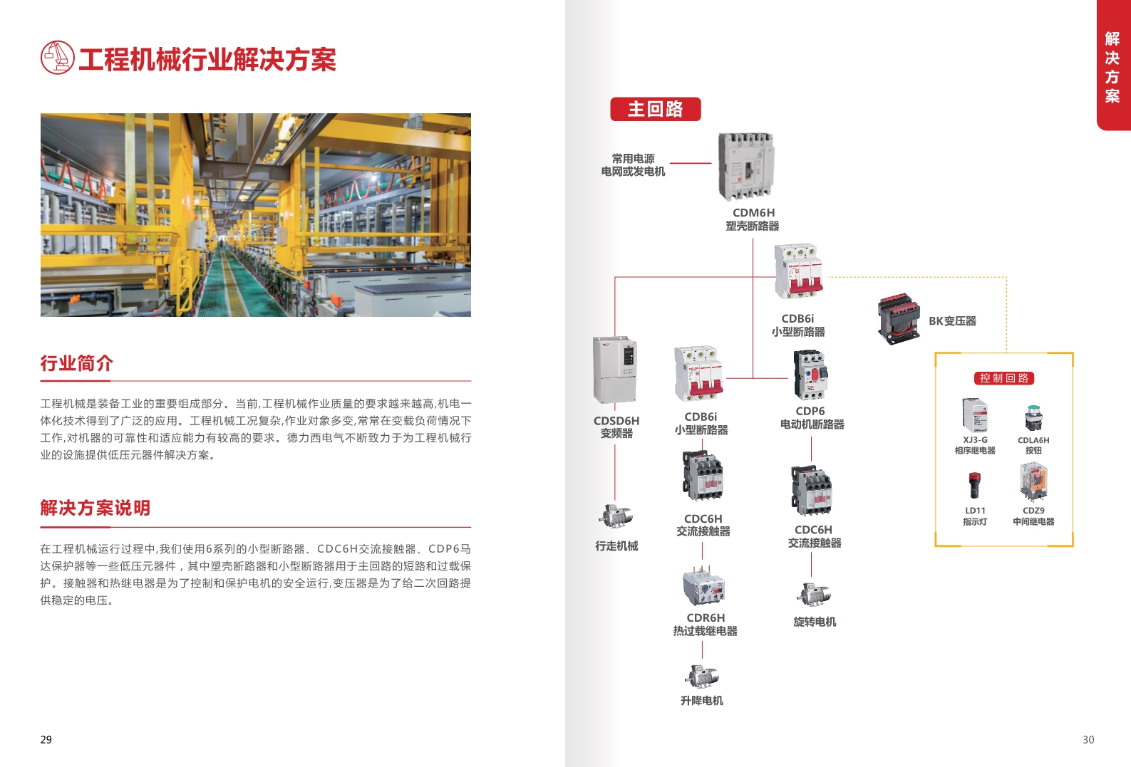 在工程機(jī)械運(yùn)行過(guò)程中,我們使用6系列的小型斷路器、CDC6H交流接觸器、CDP6馬達(dá)保護(hù)器等一些低壓元器件,其中塑殼斷路器和小型斷路器用于主回路的短路和過(guò)載保護(hù)。接觸器和熱繼電器是為了控制和保護(hù)電機(jī)的安全運(yùn)行,變壓器是為了給二次回路提供穩(wěn)定的電壓。